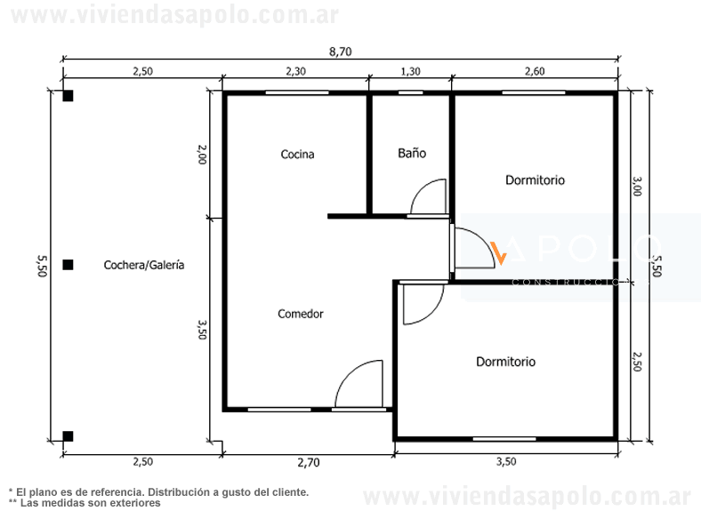 Vivienda Industrializada de 48 metros cuadrados de 2 Dormitorios Con Galería. Con paredes de fibrocemento en su parte exterior y durlock en su parte interior. Techo de chapa sincalum trapezoidal. Cielorraso de machimbre. Ventanas de aluminio vidrio entero de 1m x 1,10m. Puerta de ingreso de chapa doble inyectada. Puertas placas en el interior. Instalación Eléctrica (Caños corrugados y cajas de luz colocados. Sin Cableado). Instalación de caños agua.