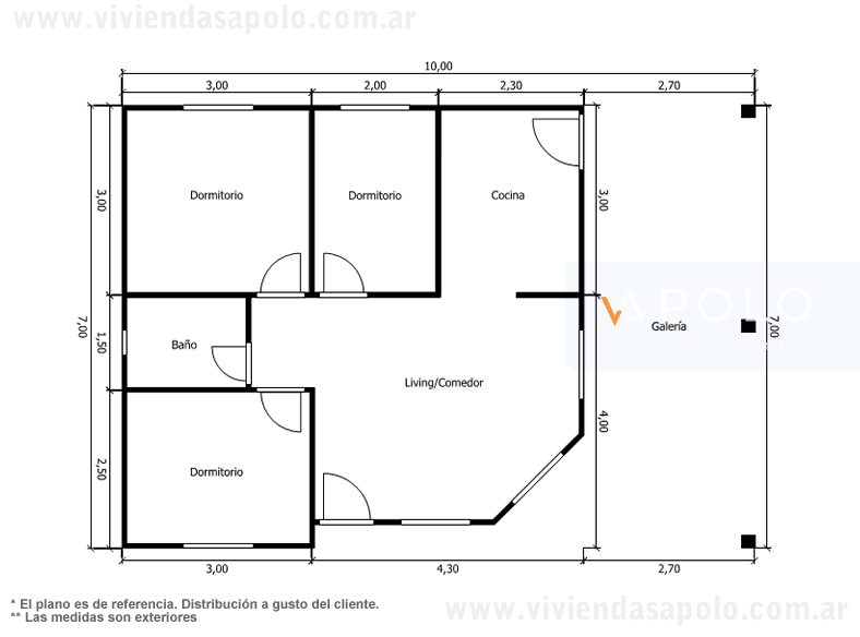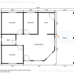 Vivienda Industrializada de 70 metros cuadrados de 3 Dormitorios Con Galería. Con paredes de fibrocemento en su parte exterior y durlock en su parte interior. Techo de chapa sincalum trapezoidal. Cielorraso de machimbre. Ventanas de aluminio vidrio entero de 1m x 1,10m. Puerta de ingreso de chapa doble inyectada. Puertas placas en el interior. Instalación Eléctrica (Caños corrugados y cajas de luz colocados. Sin Cableado). Instalación de caños agua.