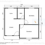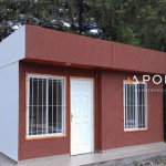 Vivienda Industrializada Minimalista de 34 metros cuadrados de 2 Dormitorios. Con paredes de fibrocemento en su parte exterior y durlock en su parte interior. Techo de chapa sincalum trapezoidal. Cielorraso de machimbre. Ventanas de aluminio vidrio entero de 1m x 1,10m. Puerta de ingreso de chapa doble inyectada. Puertas placas en el interior. Instalación Eléctrica (Caños corrugados y cajas de luz colocados. Sin Cableado). Instalación de caños agua.